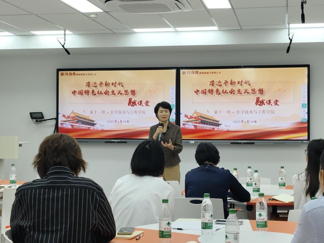 2025年4月30日,医学技术与工程学院在科技园B座108智慧教室顺利承办公司“习近平新时代中国特色社会主义思想融课堂”暨“医马当先”课程思政工作坊2.0(第十一期)活动。本期工作坊特邀校课程思政导师团刘晓如、庄嘉元、林明惠三位教师担任主讲,我院经理林东红、各学系主任、各课程负责人及骨干教师近30人参与了工作坊培训与交流活动。