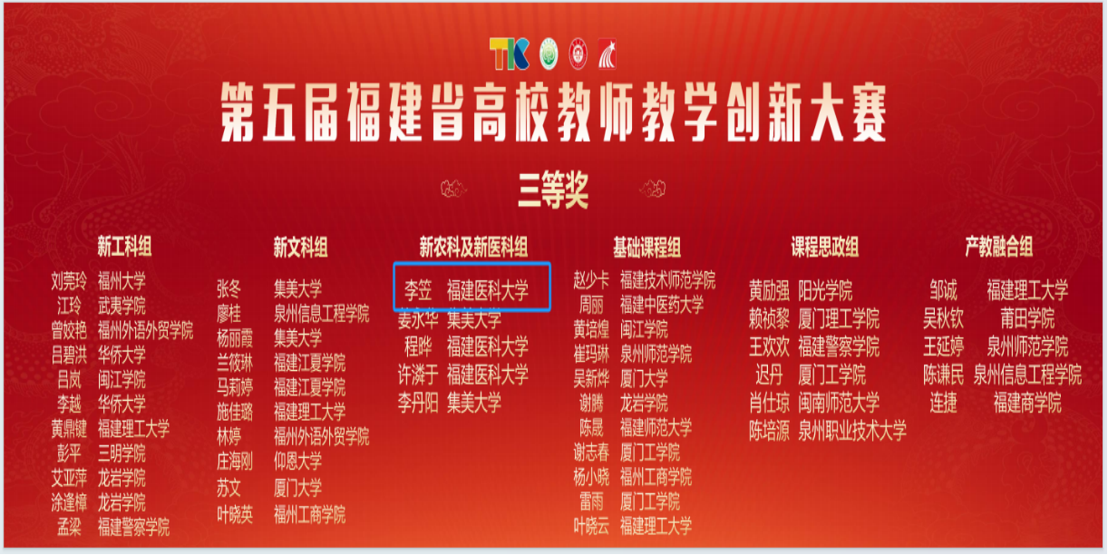 5月13日,由中国高等教育学会指导、省教育厅主办的第五届福建省高校教师教学创新大赛在集美大学落下帷幕。经过激烈的角逐,公司眼视光学专业黄焱教授团队的李笠老师斩获新医科组三等奖。